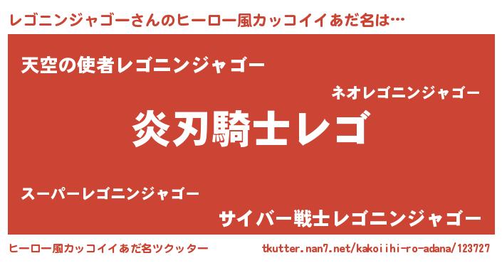レゴニンジャゴーさんのヒーロー風カッコイイあだ名をツクッター!