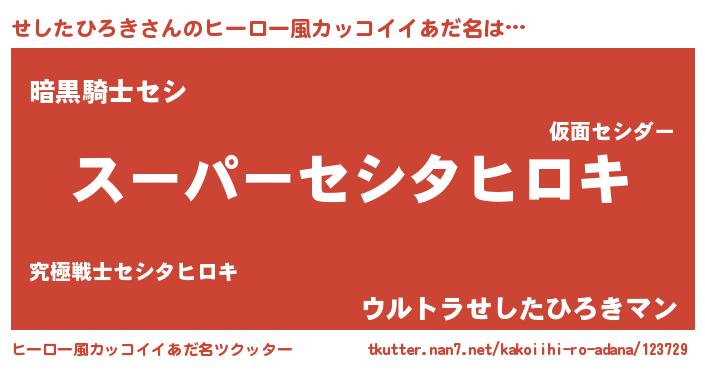 | 胡散臭い通販商品みたいなあだ名 | 『億万長者になれる霊験あらたかなお札…その名も「せしたひろき」』 |