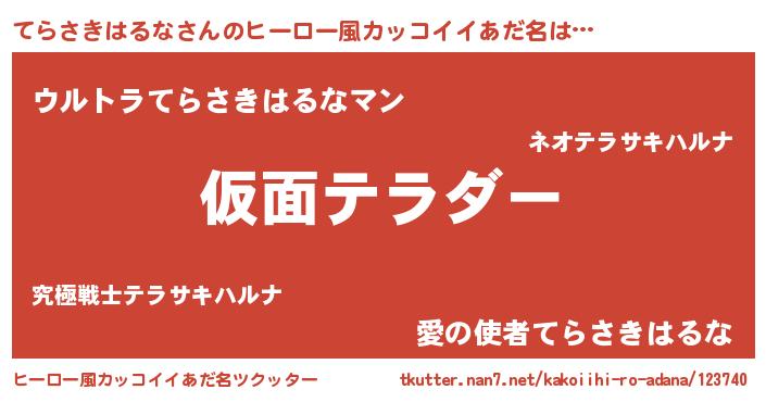 | 男性向けラノベタイトル風あだ名 | 『魔弾の王とてらさきはるな』 |