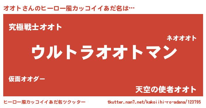 | 男性向けラノベタイトル風あだ名 | 『うちの娘の為ならば、俺はもしかしたらオオトも倒せるかもしれない。』 |