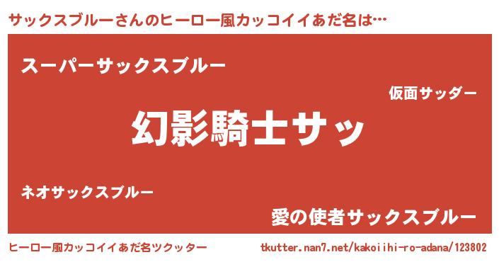 | 男性向けラノベタイトル風あだ名 | 『サックスブルーの嫁は女の子じゃないと思った?』 |