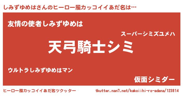 | ポケモン風あだ名 | 『ヒシミズユメハ』『シックウザ』 |