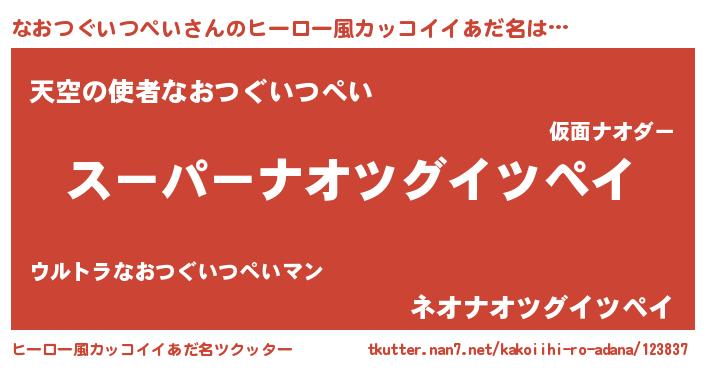 | 胡散臭い通販商品みたいなあだ名 | 『必ず成功するブレスレット…その名も「なおつぐいつぺい」』 |