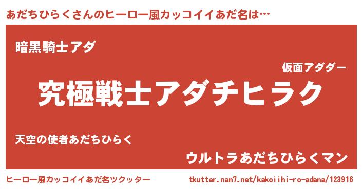 | 男性向けラノベタイトル風あだ名 | 『あだちひらくに滅ぼされるだけの簡単なお仕事です』 |