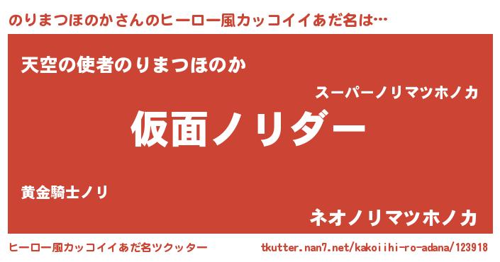 | 男性向けラノベタイトル風あだ名 | 『この素晴らしい世界にのりまつほのかを!』 |