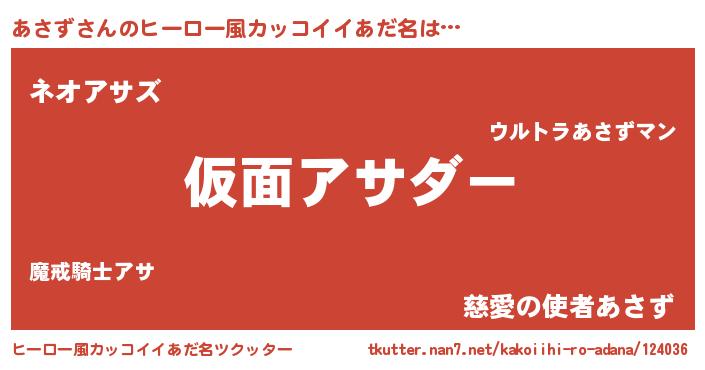| 意味不明あだ名 | 『ヨモギ科あさず属』『永久保存あさず』 |