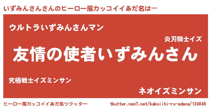| 男性向けラノベタイトル風あだ名 | 『おまえをオタクにしてやるから、俺をいずみんさんにしてくれ! 』 |