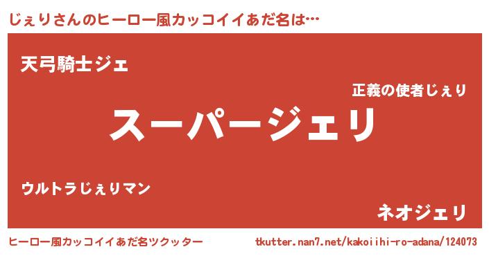| 男性向けラノベタイトル風あだ名 | 『じぇりの憂鬱』 |