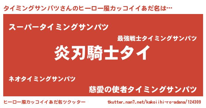 | 胡散臭い通販商品みたいなあだ名 | 『全米が絶賛したサプリメント…その名も「タイミングサンパツ」』 |