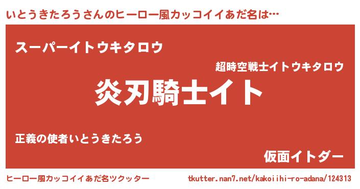 | 男性向けラノベタイトル風あだ名 | 『いとうきたろうの嫁は女の子じゃないと思った?』 |