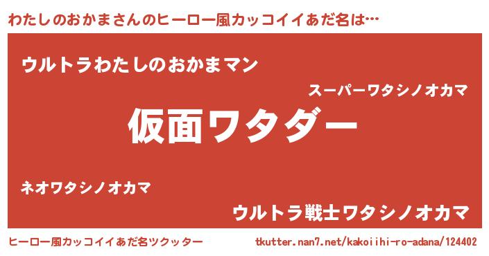 | 意味不明あだ名 | 『住所不定無職わたしのおかま(91歳)』 |