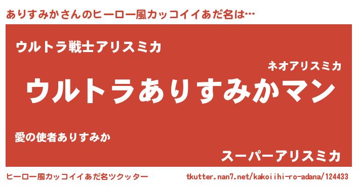 | 意味不明あだ名 | 『ありすみかフォーエバー』 |