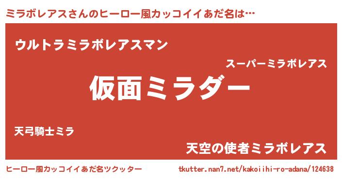 | 意味不明あだ名 | 『住所不定無職ミラボレアス(40歳)』 |