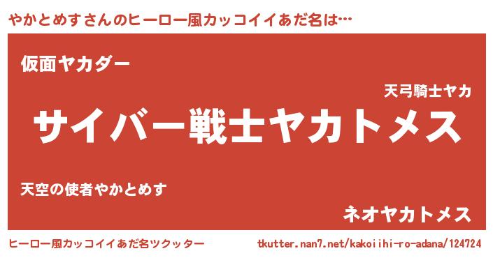 | 男性向けラノベタイトル風あだ名 | 『Re:やかとめすから始める異世界生活』 |