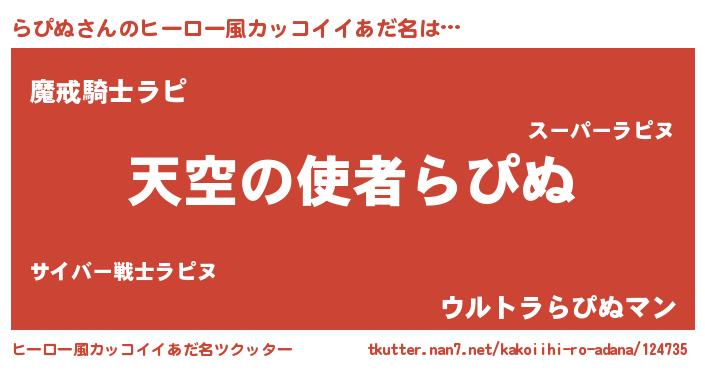 | 女子向けラノベタイトル風あだ名 | 『らぴぬの玉の輿計画!』『らぴぬ恋絵巻』 |