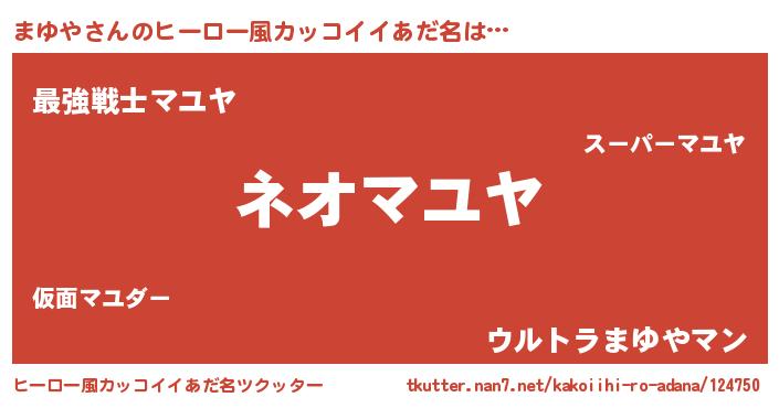 | 男性向けラノベタイトル風あだ名 | 『まゆやという概念が存在しない退屈な世界 』 |