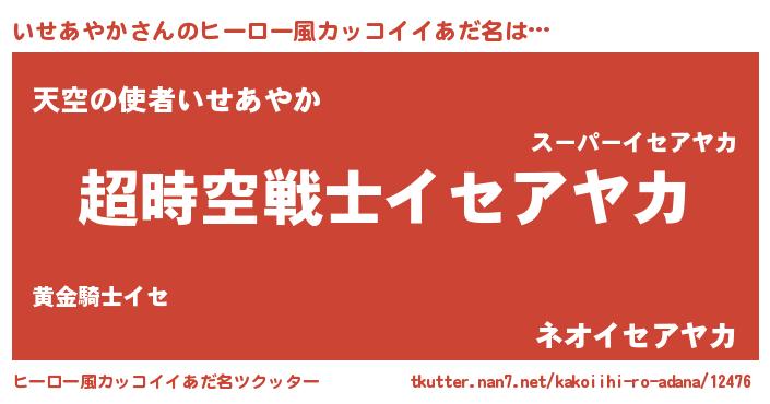 | ヘコむあだ名 | 『いせあやか(爆)』『いせもー』 |