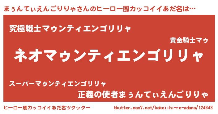 | 男性向けラノベタイトル風あだ名 | 『まぅんてぃえんごりりゃという概念が存在しない退屈な世界 』 |