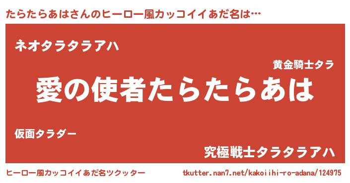 | ヘコむあだ名 | 『たらたらあは(爆)』『たらを』 |