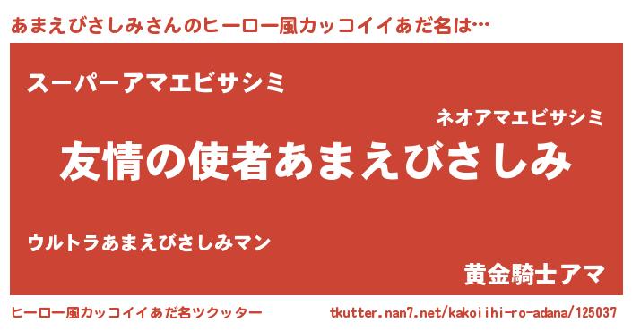 | 男性向けラノベタイトル風あだ名 | 『はたらくあまえびさしみさま!』 |