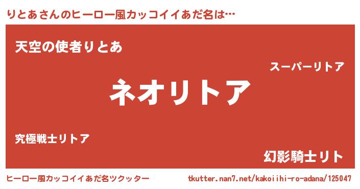 | ヘコむあだ名 | 『りとあ(震え声)』『りとぷりん』 |
