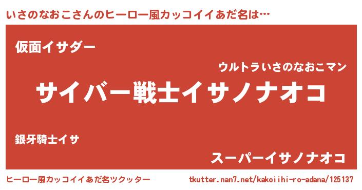 | 男性向けラノベタイトル風あだ名 | 『Re:いさのなおこから始める異世界生活』 |