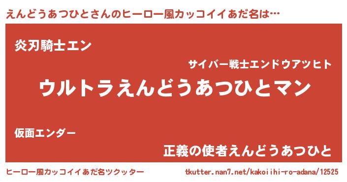 | ポケモン風あだ名 | 『エンドダネ』『ヒエンドウアツヒト』 |