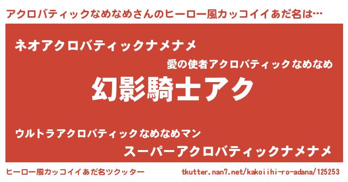 | 女子向けラノベタイトル風あだ名 | 『アクロバティックなめなめの卵を拾いまして』 |