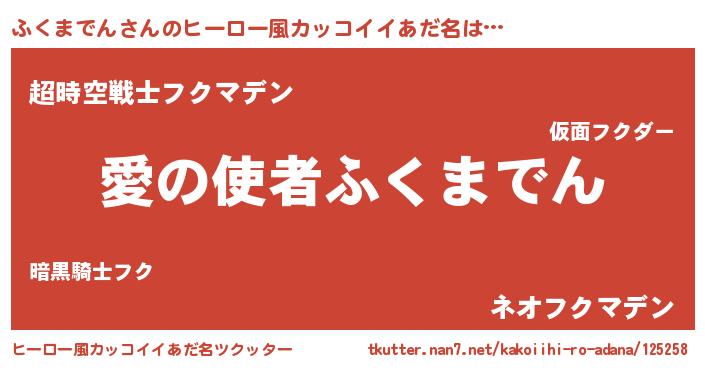 | 男性向けラノベタイトル風あだ名 | 『おまえをオタクにしてやるから、俺をふくまでんにしてくれ! 』 |