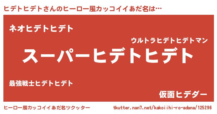 | 女子向けラノベタイトル風あだ名 | 『(仮)ヒデトヒデトのやんごとなき事情』 |