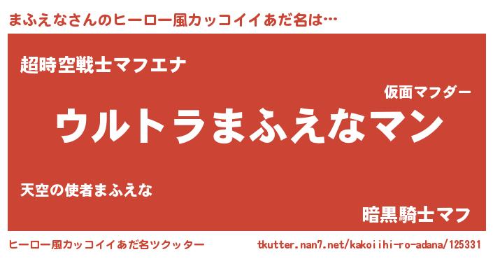 | 意味不明あだ名 | 『まふえなフォーエバー』『自称まふえな』 |