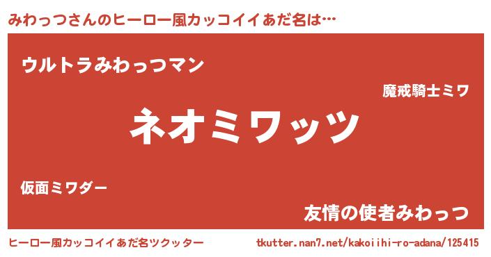 | 胡散臭い通販商品みたいなあだ名 | 『絶対に幸福をもたらす水素水…その名も「みわっつ」』 |