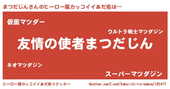 | 男性向けラノベタイトル風あだ名 | 『おまえをオタクにしてやるから、俺をまつだじんにしてくれ! 』 |