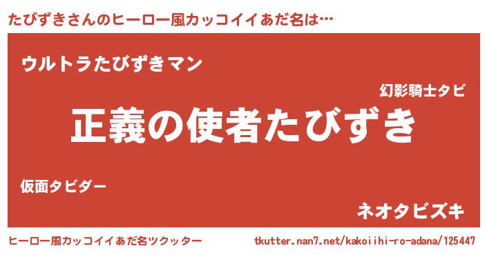| 男性向けラノベタイトル風あだ名 | 『タビズキスレイヤー』『緋弾のタビズキ』 |