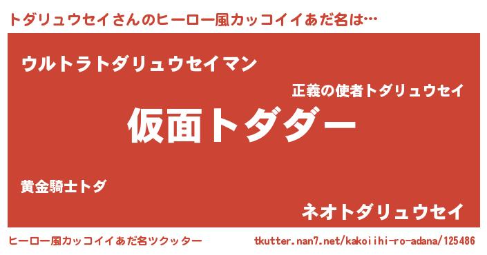 | 意味不明あだ名 | 『住所不定無職トダリュウセイ(74歳)』 |