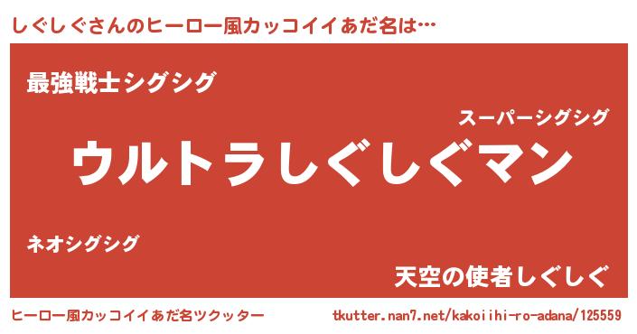 | 男性向けラノベタイトル風あだ名 | 『しぐしぐ~年齢イコール彼女いない歴の魔法使い~』 |