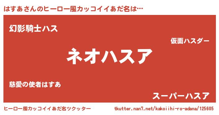 | ヘコむあだ名 | 『はすあ(笑)』『はすを』『つくし』 |
