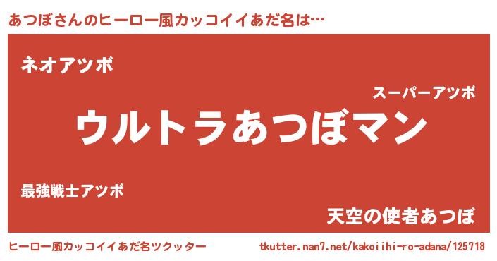 | 男性向けラノベタイトル風あだ名 | 『アツボスレイヤー』 |