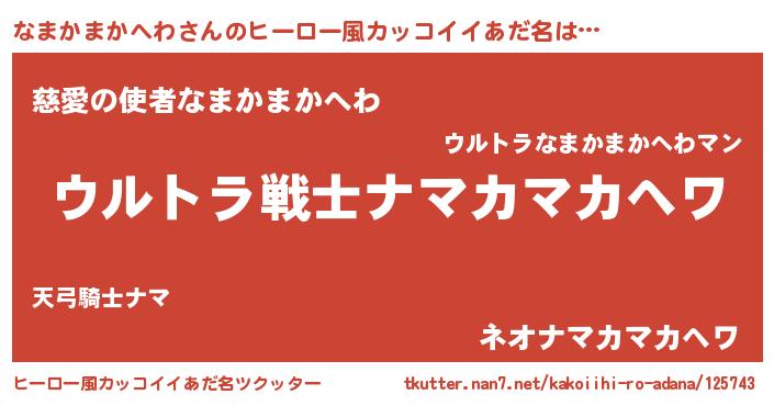 | 意味不明あだ名 | 『自称なまかまかへわ』 |