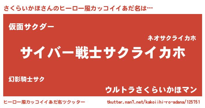 | 恥ずかしいあだ名 | 『サクライカホデラックス』『さくっちょ』 |
