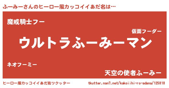 | 男性向けラノベタイトル風あだ名 | 『転生したらふーみーだった件』 |