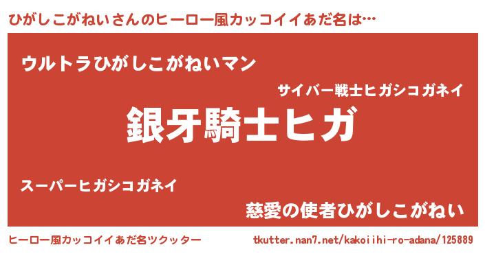 | ポケモン風あだ名 | 『ヒヒガシコガネイ』『ヒガシダネ』 |