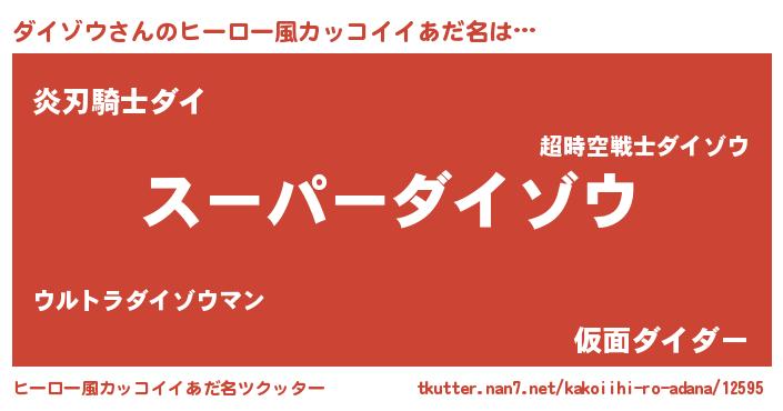 男性向けラノベタイトル風あだ名 | 『ダイゾウの憂鬱』『魔弾の王とダイゾウ』 |