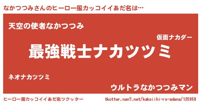 | 男性向けラノベタイトル風あだ名 | 『なかつつみ~年齢イコール彼女いない歴の魔法使い~』 |