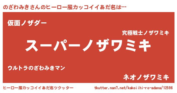 | ヘコむあだ名 | 『のざにゅー』『のざわみき(遠い目)』 |