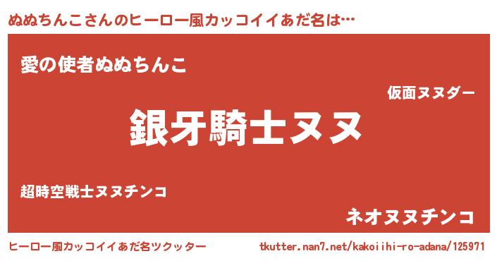 ぬぬちんこさんのヒーロー風カッコイイあだ名をツクッター!