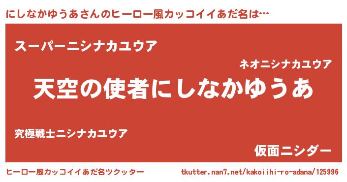 | 男性向けラノベタイトル風あだ名 | 『ノーゲーム・ノーニシナカユウア』 |