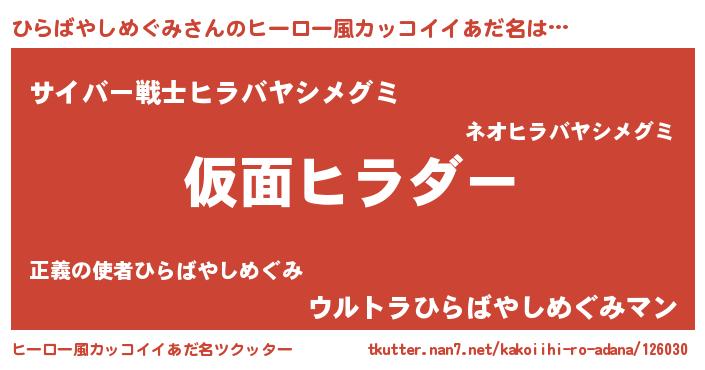 | 恥ずかしいあだ名 | 『ヒラバヤシメグミデラックス』 |