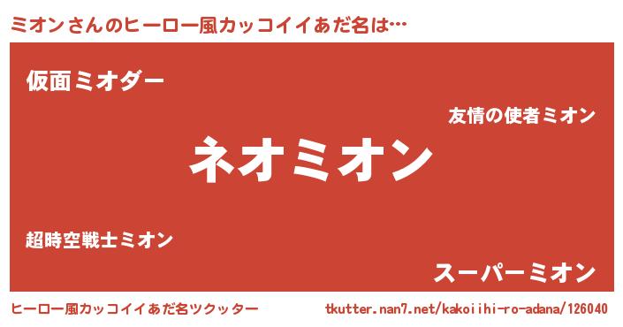 | ポケモン風あだ名 | 『ミオゴンZ』『ゼニミオ』『ミーオイ』 |
