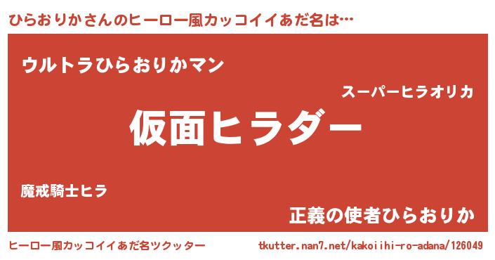 | 男性向けラノベタイトル風あだ名 | 『この素晴らしい世界にひらおりかを!』 |